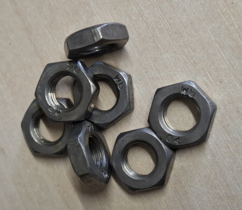 Moer M8x1 dunne uitvoering blankO.a als borgmoer bij klepstel boutjes en als borgmoer van de bout voor afstelling koppeling
